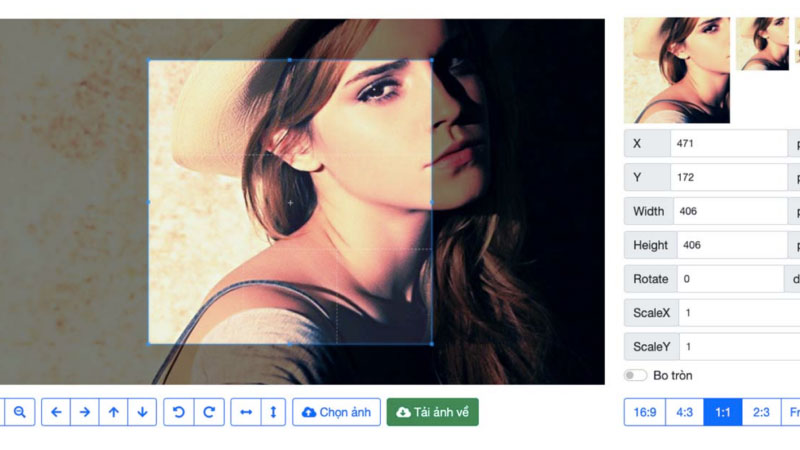 Hỗ trợ cắt ảnh chính xác: Có thể cắt theo kích thước tùy chỉnh hoặc theo tỷ lệ có sẵn.