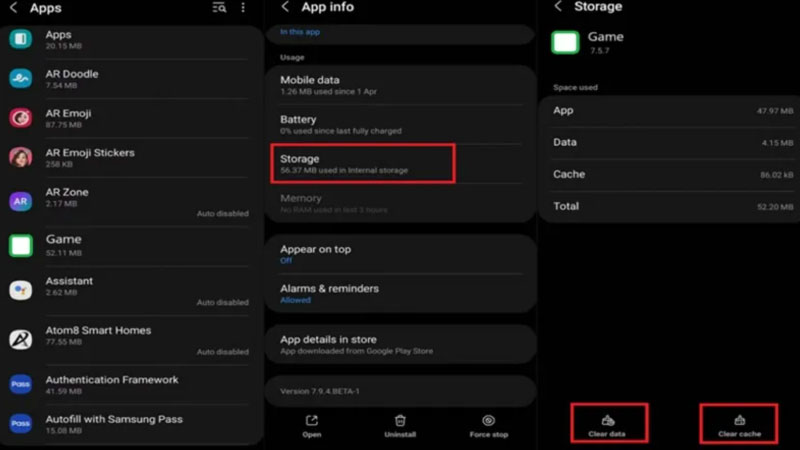 1. Xóa dữ liệu game qua cài đặt ứng dụng