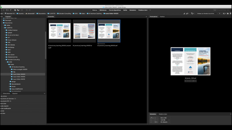 Khả năng duyệt và xem trước file là điểm mạnh cốt lõi nhất của Adobe Bridge hiện nay. Giao diện của Bridge được chia thành các cửa sổ (panel) linh hoạt có thể tùy chỉnh được. Bao gồm Folder (cây thư mục), Favorites (thư mục yêu thích), Content (nội dung thư mục đang chọn). Kèm theo đó là Preview (xem trước file lớn), Metadata (thông tin file), Keywords (từ khóa)… Bạn có thể dễ dàng điều hướng qua các thư mục chứa tài sản sáng tạo của mình thật nhanh chóng.