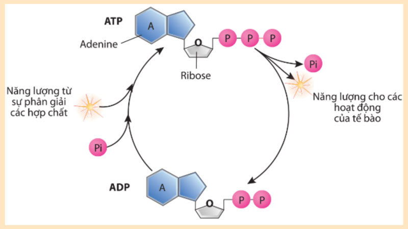 Quá trình này phá vỡ liên kết cao năng cuối cùng, giải phóng ra một lượng năng lượng lớn để tế bào sử dụng. Hãy tưởng tượng ATP như một viên pin đã được sạc đầy. Khi tế bào “sử dụng” pin, nó sẽ “xả” năng lượng và viên pin trở thành ADP (viên pin đã hết). Đây là quá trình cung cấp năng lượng trực tiếp cho mọi hoạt động sống.