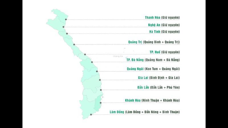 Ngược lại, những tỉnh duyên hải Miền Trung thường có diện tích các tỉnh việt nam nhỏ hơn và bị giới hạn bởi dãy Trường Sơn hùng vĩ. Những tỉnh này tập trung phát triển kinh tế biển và những ngành du lịch dịch vụ cao cấp, ví dụ như Đà Nẵng hay Khánh Hòa. Tuy nhiên, một số tỉnh như Nghệ An và Thanh Hóa lại có diện tích rất lớn, trải dài từ ven biển cho đến những vùng núi cao. Điều này đã mang lại cho những tỉnh này một sự đa dạng rất lớn về mặt kinh tế và văn hóa.