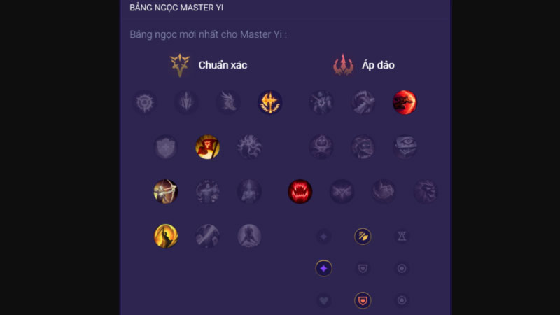 Việc lựa chọn bảng ngọc và phép bổ trợ phù hợp là rất quan trọng để tối ưu hóa sức mạnh cho Master Yi.