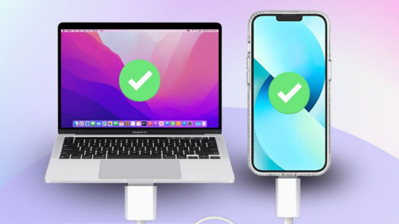 - Sử dụng cáp Lightning (hoặc USB-C tùy đời iPhone) chính hãng để kết nối iPhone với máy tính.