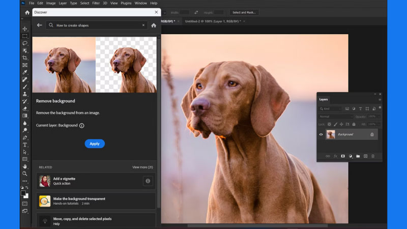 - Bước 3: Nhấn vào “Remove Background”. Chỉ cần nhấn vào nút này, Photoshop sẽ tự động phân tích và tách nền cho bạn. Kết quả sẽ được áp dụng thông qua một Layer Mask, giúp bạn có thể chỉnh sửa lại nếu cần.