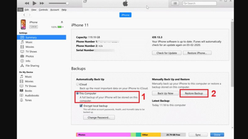 Đây là tính năng quan trọng nhất của iTunes đối với nhiều người dùng iPhone hiện nay. Nó giúp bạn tạo một bản sao lưu đầy đủ dữ liệu của thiết bị lên máy tính.