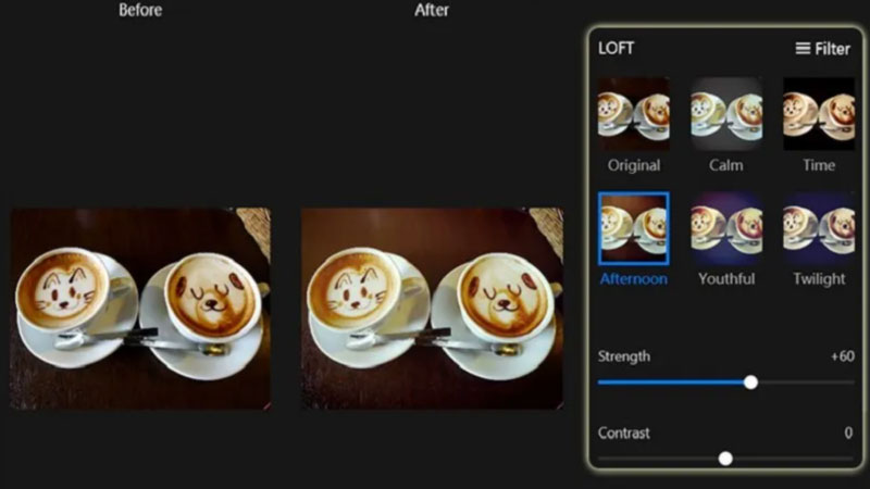 - Để áp dụng bộ lọc, chỉ cần chọn bộ lọc yêu thích và điều chỉnh cường độ để phù hợp với ảnh của bạn.