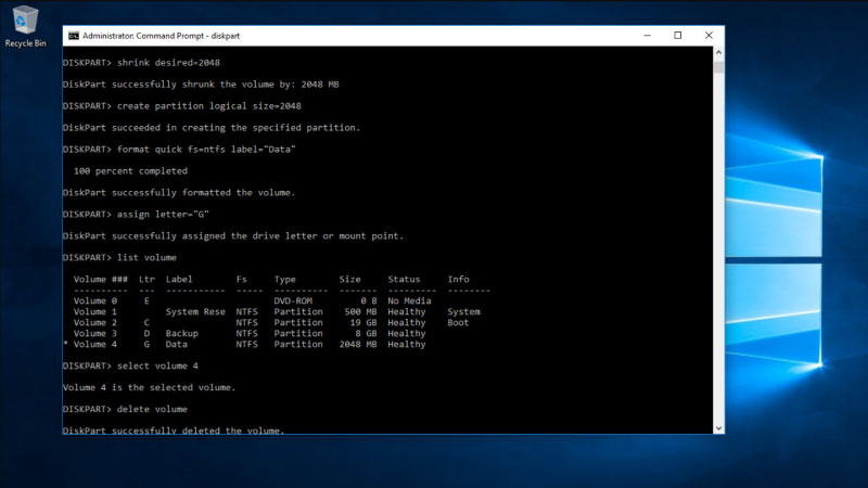 Cảnh báo: Hãy thực hiện cẩn thận vì các lệnh này có thể xóa nhầm dữ liệu nếu bạn chọn sai ổ đĩa.
