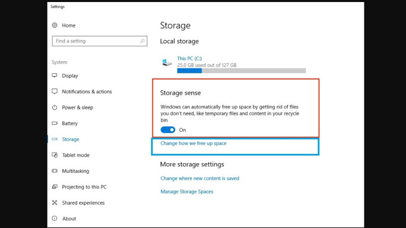 - Vào Settings (Cài đặt) > System (Hệ thống) > Storage (Lưu trữ).