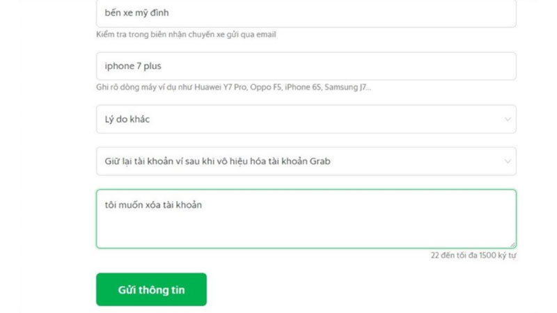 Cách 2: Xoá toàn bộ lịch sử Grab bằng cách vô hiệu hóa tài khoản vĩnh viễn