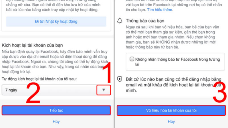 Sau khi tài khoản bị vô hiệu hóa, bạn có thể dễ dàng khôi phục lại tài khoản bằng cách đăng nhập lại vào Facebook.