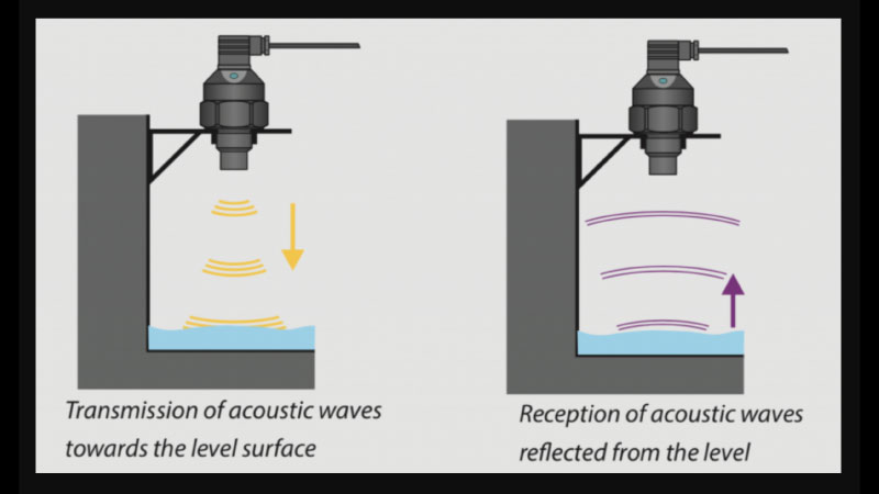Cảm biến siêu âm hoạt động dựa trên nguyên lý đo thời gian sóng âm truyền trong không khí. Phương pháp này còn được gọi là Thời gian bay, viết tắt là ToF, khá phổ biến hiện nay. Ban đầu, bộ phát sóng của cảm biến tạo ra một loạt xung siêu âm tần số cao. Các xung âm thanh sẽ lan truyền ra môi trường không khí với tốc độ xác định trước đó. Tuy nhiên, nhiệt độ và độ ẩm xung quanh có thể làm ảnh hưởng nhẹ đến tốc độ truyền sóng.