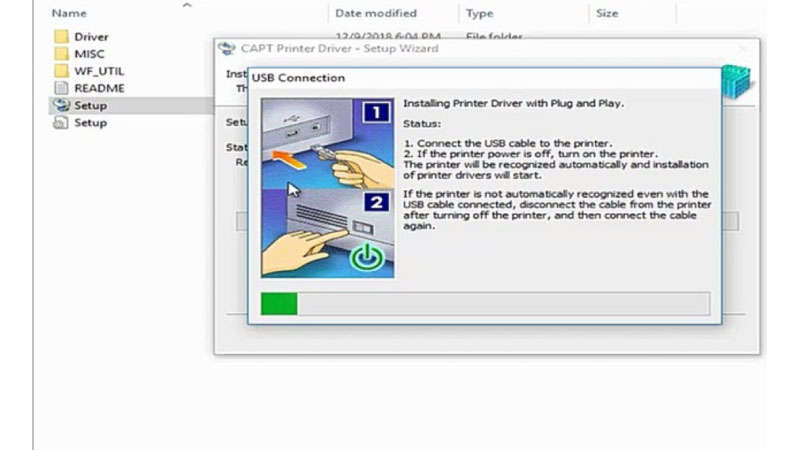 - Khi được yêu cầu, đảm bảo máy in đã kết nối với máy tính qua cáp USB và bật nguồn.