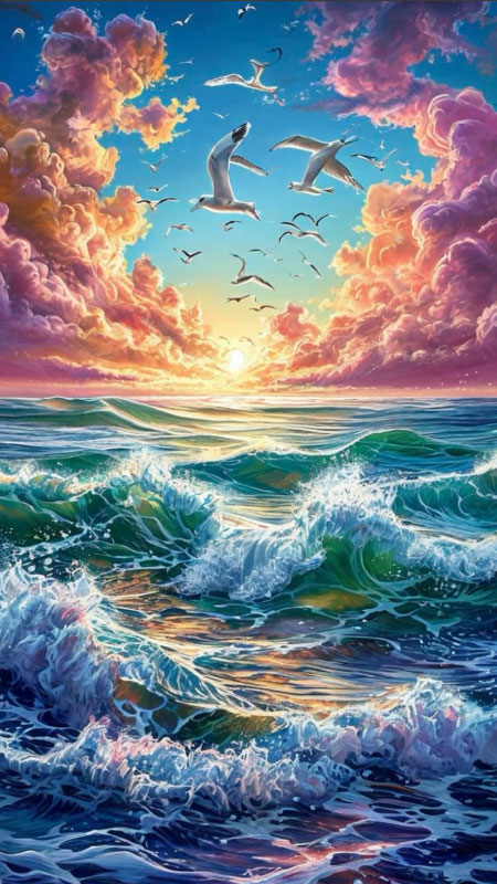 Các bãi biển nhiệt đới với cát trắng mịn, nước xanh ngọc bích, hàng dừa nghiêng bóng rất phổ biến. Cảnh biển động với những con sóng lớn bạc đầu xô vào bờ đá cũng đầy kịch tính, mạnh mẽ. Đặc biệt, ảnh thiên nhiên đẹp 3d dưới đáy biển mở ra thế giới kỳ thú với rặng san hô rực rỡ. Các loài cá đủ màu sắc bơi lội, hiệu ứng ánh sáng xuyên qua mặt nước (caustics) rất ấn tượng.