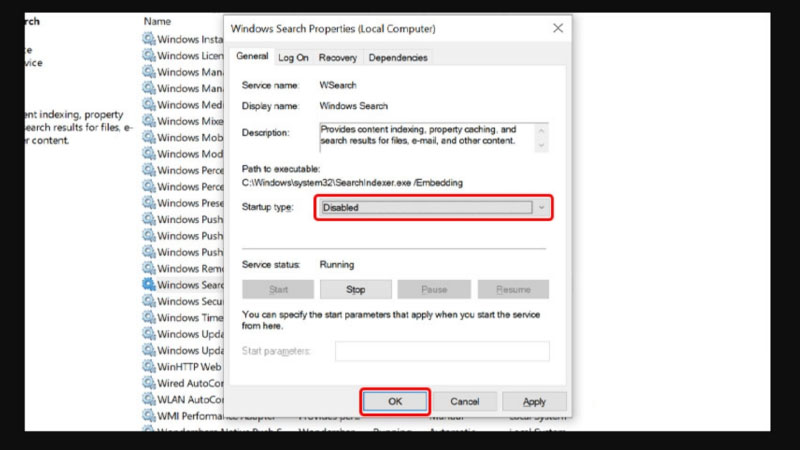 2. Tắt hoặc Tối Ưu Hóa Dịch Vụ Windows Search – Lỗi 100 disk