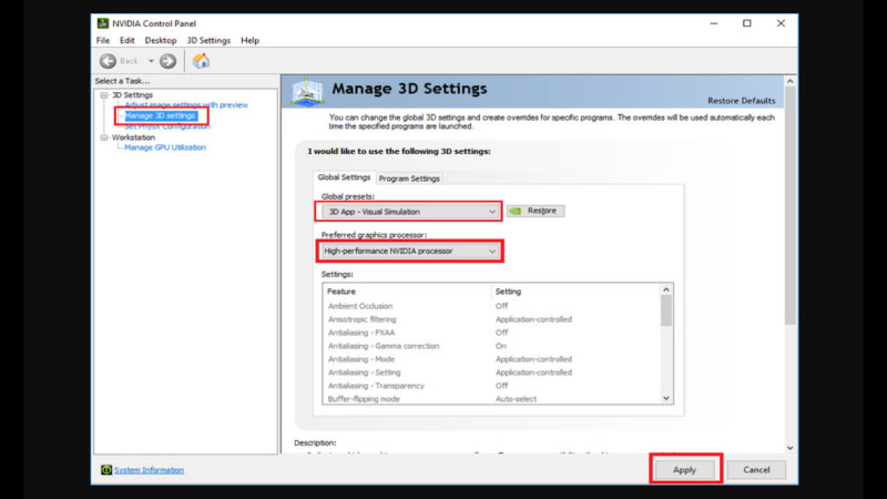 10. Tinh Chỉnh Cài Đặt Trong NVIDIA Control Panel – Cách tối ưu hóa win 10