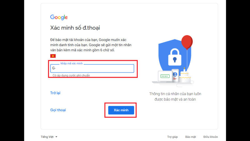 Nhiều người thường bỏ qua bước này vì cho rằng nó không bắt buộc. Tuy nhiên, đây lại là bước sẽ “cứu sống” bạn khi bạn quên mật khẩu hoặc tài khoản bị tấn công. Google sẽ yêu cầu bạn cung cấp một số điện thoại và một địa chỉ email khôi phục.