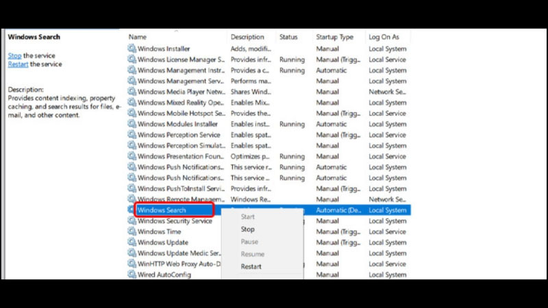3. Windows Search – Tắt các service không cần thiết trong win 10