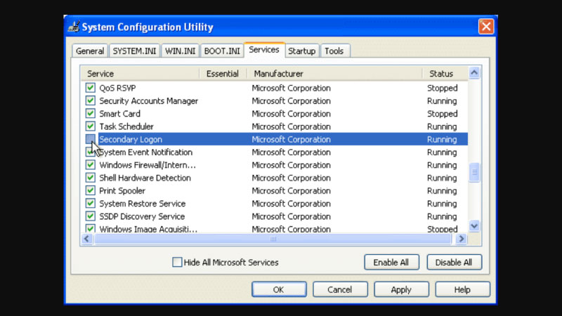 11. Secondary Logon – Tắt các service không cần thiết trong win 10