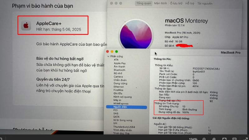 - Cycle Count dưới 500 là tốt, dưới 800 là chấp nhận được. Trên 1000 nghĩa là pin đã chai và sắp cần thay thế.