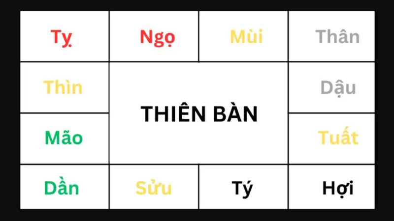 Thiên bàn là một khung hình vuông được chia thành 12 ô, gọi là 12 cung. Mỗi cung đại diện cho một khía cạnh, một lĩnh vực trong cuộc sống của một con người.