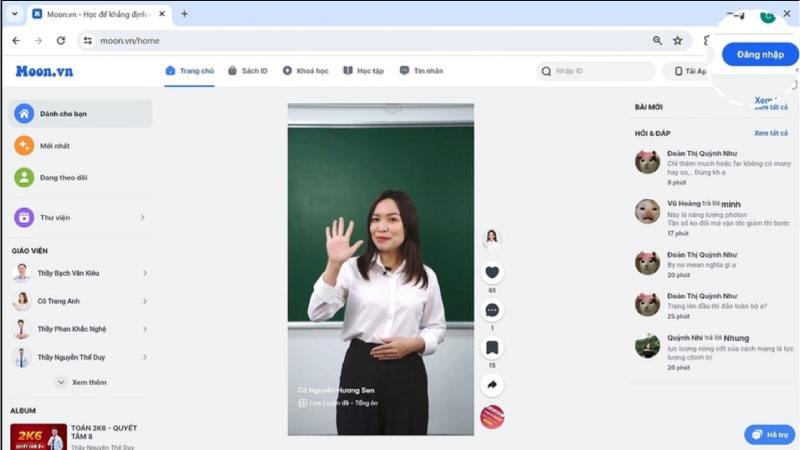 Học tập trực tuyến không có nghĩa là bạn phải học một mình. Với Moon VN Active ID, bạn trở thành một phần của cộng đồng học tập sôi nổi. Các khóa học Pro S thường xuyên có các buổi livestream dạy học và chữa đề. Trong các buổi này, bạn có thể đặt câu hỏi và tương tác trực tiếp với giáo viên. Mọi thắc mắc của bạn sẽ được giải đáp một cách cặn kẽ. Đây là cơ hội quý giá để bạn hiểu sâu hơn về bài học.