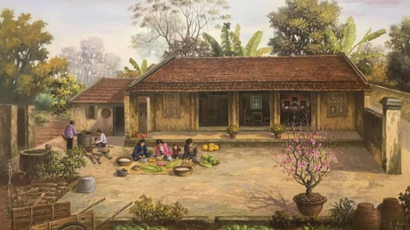 Những ngôi nhà ở làng quê Việt Nam mang vẻ đẹp kiến trúc giản dị, ẩn chứa sự ấm cúng. Nhà tranh vách đất với mái rạ vàng gợi cảm giác mộc mạc, gần gũi với thiên nhiên xung quanh. Nhà ba gian, năm gian truyền thống với mái ngói đỏ tươi nằm yên bình dưới bóng cây cổ thụ. Hàng cau thẳng tắp trước nhà hay giàn trầu không, giàn mướp xanh tươi tạo thêm nét duyên dáng.