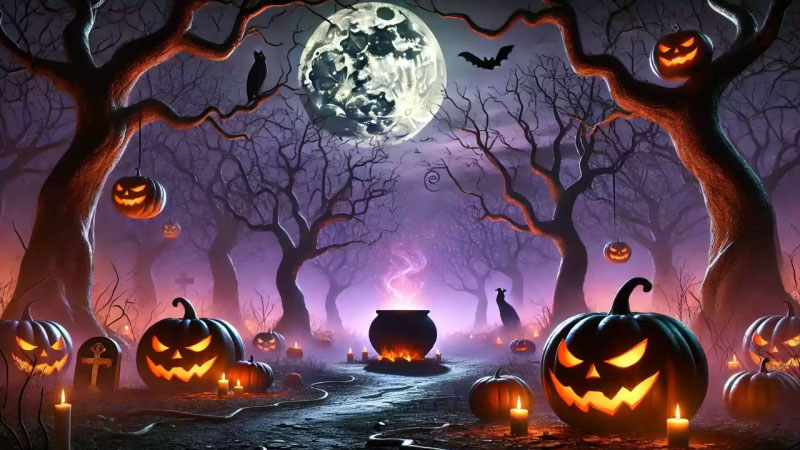 - Ảnh nền Halloween với hiệu ứng phát sáng, tạo cảm giác huyền bí
