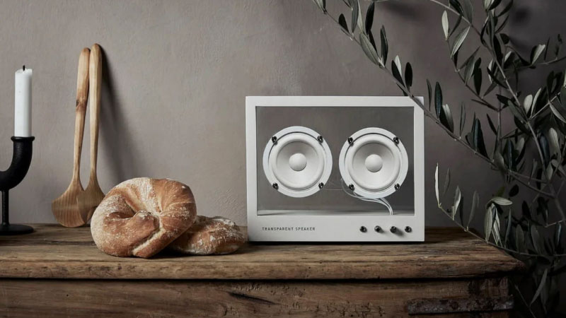 Đây là sản phẩm đầu tiên và mang tính biểu tượng nhất, định hình nên tên tuổi của thương hiệu. Transparent Speaker có thiết kế dạng một khung hình chữ nhật lớn, được làm từ nhôm và kính cường lực. Đúng như tên gọi, nó hoàn toàn trong suốt, cho phép bạn chiêm ngưỡng toàn bộ các linh kiện bên trong. Thiết kế tối giản, tinh tế này giúp nó trở thành một tác phẩm nghệ thuật thực thụ. Nó có thể hòa hợp với mọi không gian nội thất từ hiện đại đến cổ điển một cách dễ dàng.