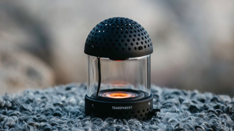 Light Speaker là một sản phẩm cực kỳ độc đáo khác của Transparent, kết hợp giữa loa và đèn. Nó có thiết kế hình trụ giống như một chiếc đèn lồng cổ điển, được làm từ kính và nhôm. Điểm đặc biệt là phần đèn bên trong có thể tạo ra hiệu ứng ánh sáng ấm áp, nhấp nháy. Nó mô phỏng theo nhịp điệu của âm nhạc, tạo cảm giác giống như một ngọn lửa thật sự. Hiệu ứng ánh sáng này được tạo ra bởi một củ loa bass rung động và một dải đèn LED.