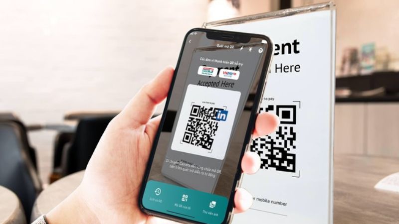 Bước 5: Đưa cho người khác quét: Bạn đưa màn hình điện thoại cho người thanh toán. Họ sẽ dùng ứng dụng của họ để quét mã QR của bạn.